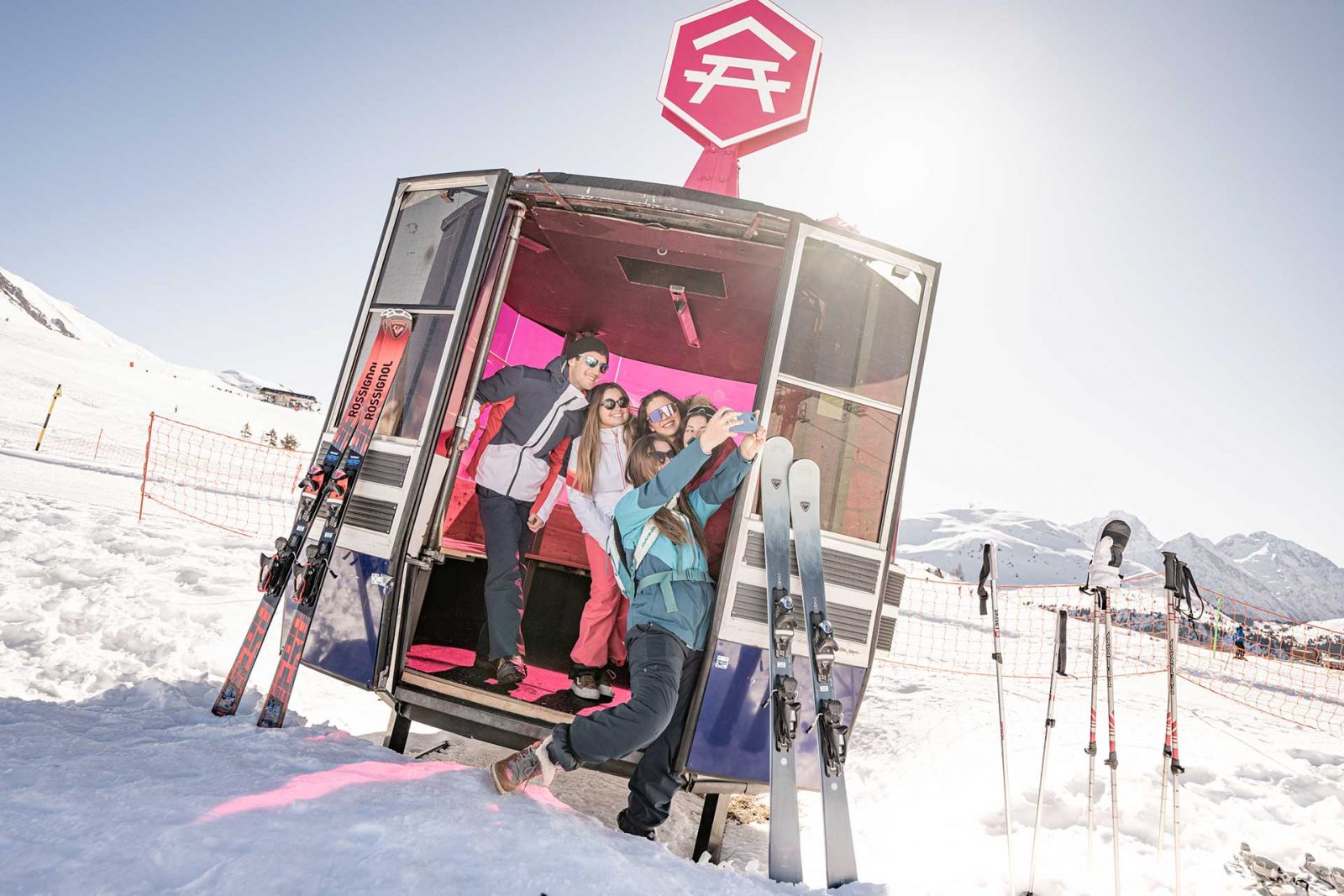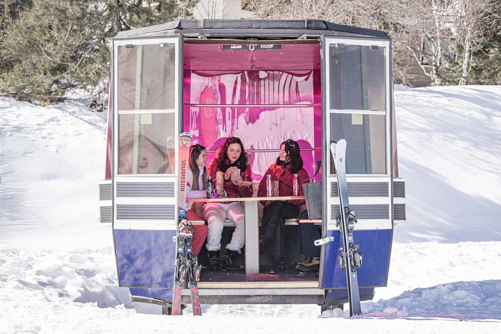 Les anciennes cabines du télécabine du Pic blanc ont été recyclées en "cabines pique-nique".
