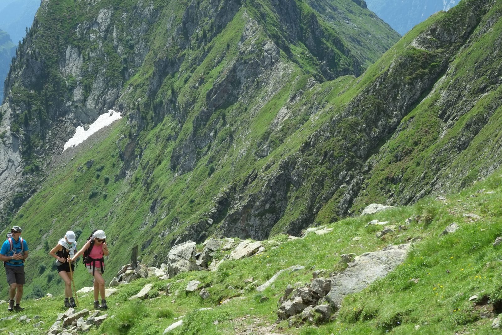 Continuer la montée à découvert vers le nord en plusieurs lacets qui deviennent plus serrés et finissent en balcon à l’approche du Col de la Pierre Luminet qui permet de franchir les Rochers du Barrioz.